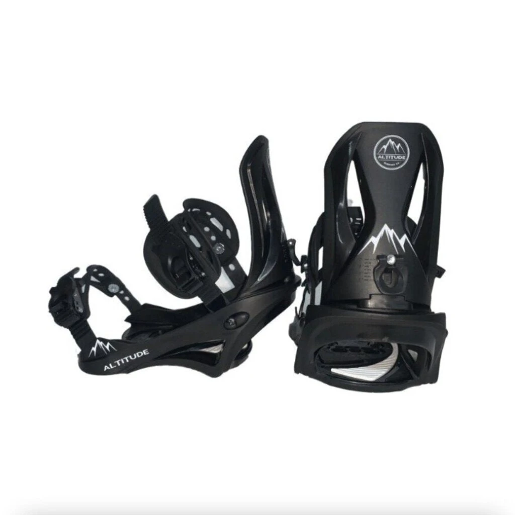 All mountain medium flex snowboard binding from Altitude Boardwerx featuring a quick entry design and 3D-profile ankle and toe straps for maximum comfort. Compatible with 4×4, 4×2, Burton 3D, and RE:FLEX EST mounting systems. A great binding option for all skill levels. New – In Box.