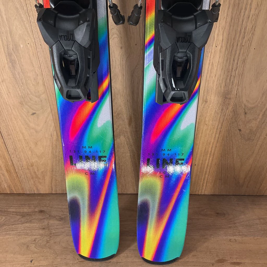 Used – Good Condition. Dig through the ditches and slam in the back bowls with the Line Pandora 94 skis. These versatile all-mountain slayers feature a 94mm underfoot width and rocker/camber/rocker profile to offer both power and float for powder days to sidehit sessions, while a lightweight construction keeps those muscles from overworking so you can make it from first chair to last. A 5Cut Multi-Radius Sidecut blends 5 different radii together to offer quick, snappy turns and long carves alike, while a directional flex softens the nose for a surf-like feel in deeper snow and a stiffer tail allows you to drive through your turns with precision. Whatever your day consists of, the Line Pandora 94 skis will take you there in style.
