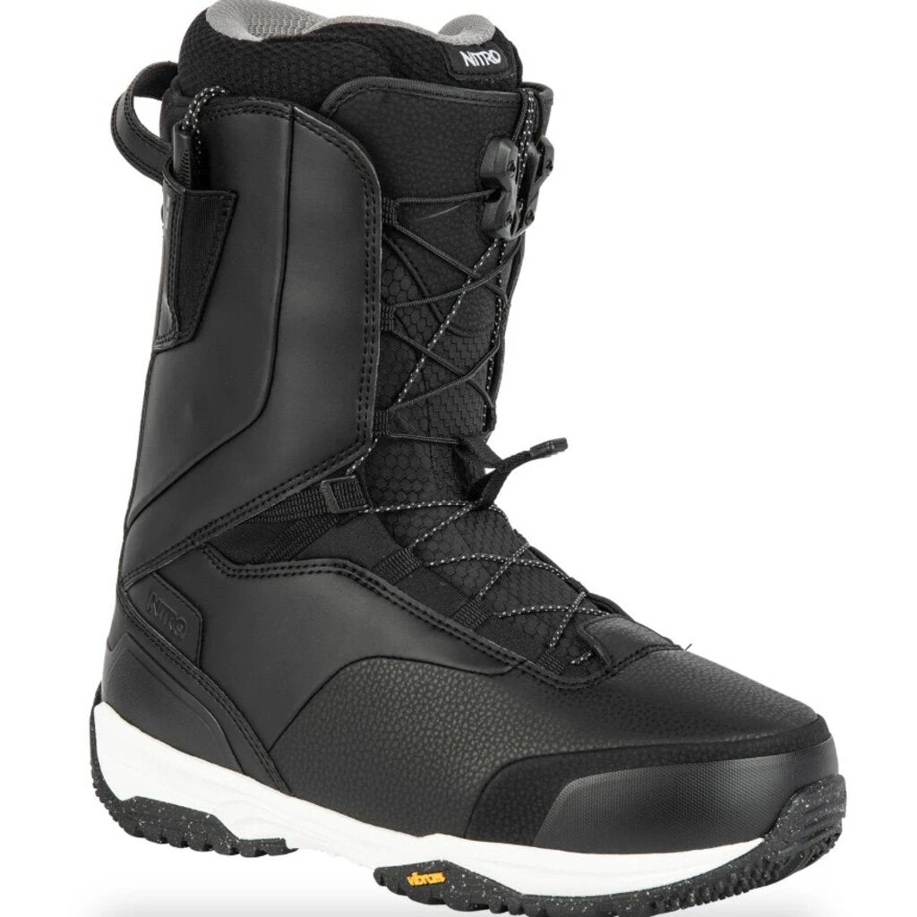 Designed for the intermediate to advanced rider looking to ride anywhere on the mountain, the Nitro Venture TLS is an all-terrain workhorse. A medium flex offers a perfect balance of response and playfulness, and a TLS Twin Lacing System eases entry and exit. A Vibram ECOSTEP compound and EVA midsole provide tons of shock absorption for heavy landings and variable conditions, and an Ortholite Dual Density Footbed provides additional support and comfort.