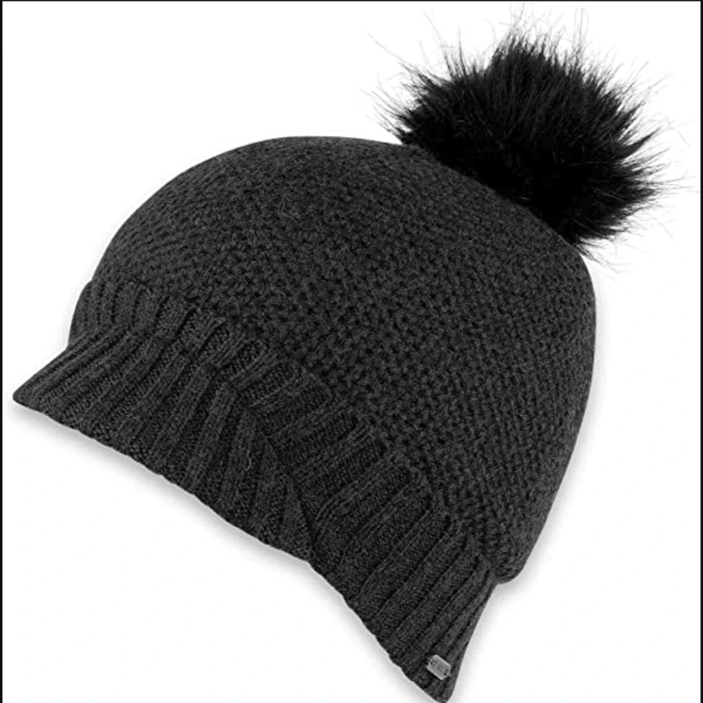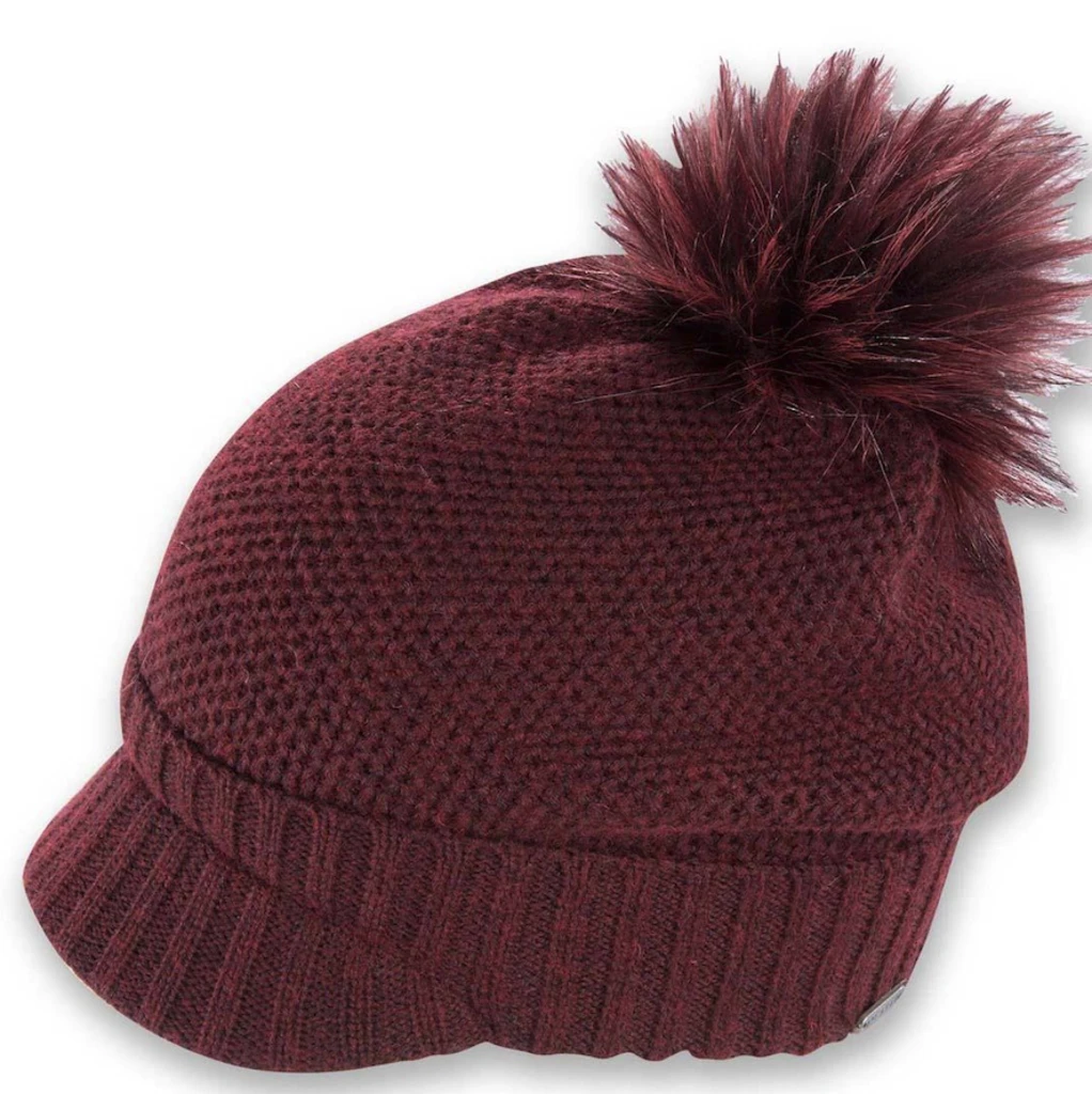 This Pistil Maddy Knit Brim Beanie has a floppy soft brim over the eyes and a large pom on the top. The knitted material is nice and warm, remove the need for 2 hats with this.